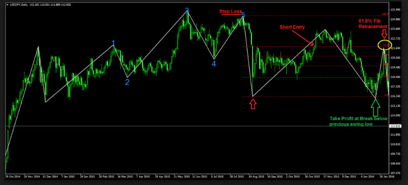 3.เมื่อมองว่าคลื่นเกิดเวฟ 5 สมบูรณ์ แล้ว ก็ สามารถ Sell ได้ แต่ ตั้ง SL ไว้ เหนือ บนสุดของ เวฟ 5 ในกรณีที่มองผิด
