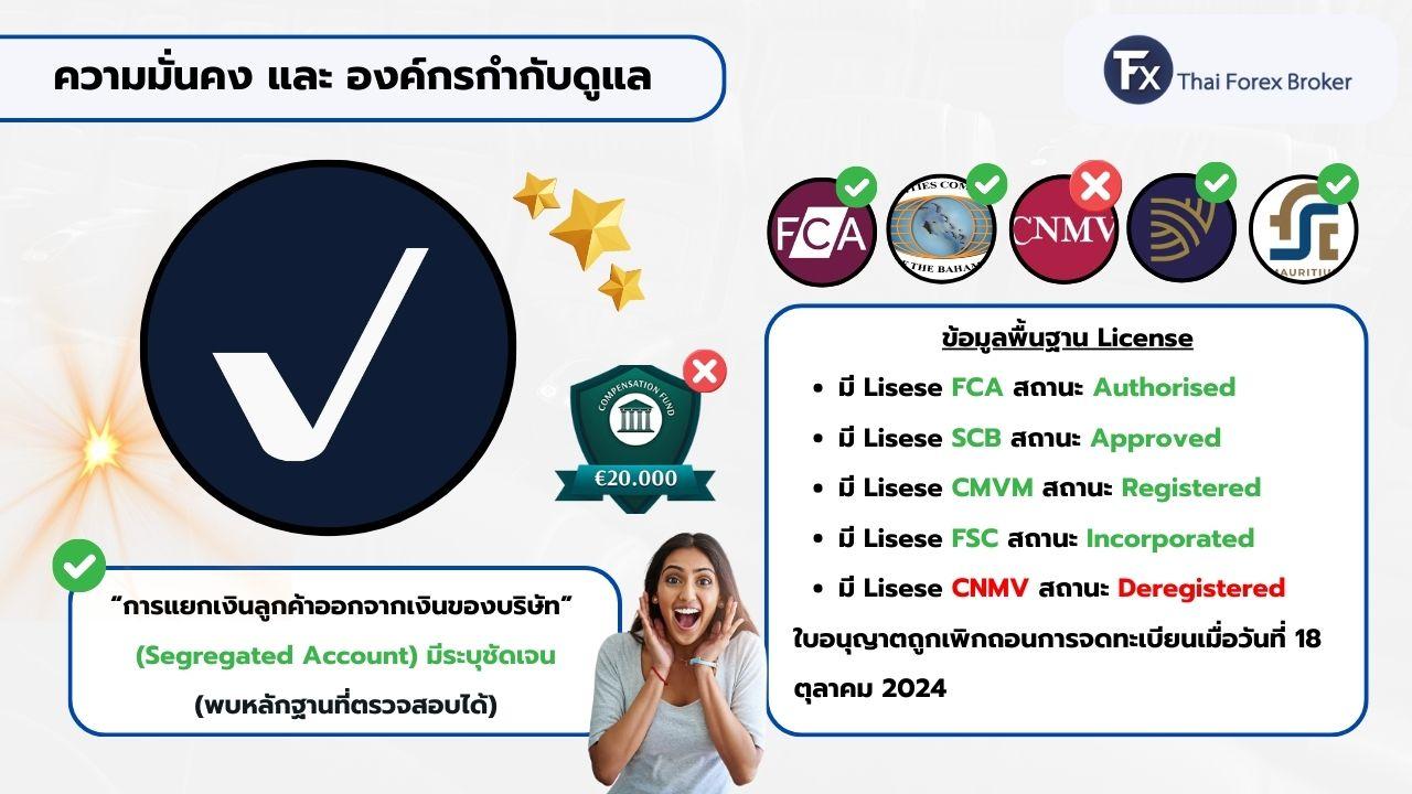 - มีใบอนุญาตจากหน่วยงานกำกับดูแลหลายประเทศ เช่น FCA (สหราชอาณาจักร), SCB (Bahamas), CMVM (Portugal) และ FSC Mauritius ซึ่ง FCA ถือว่าเป็นหน่วยงานกำกับดูแลระดับ Top Tier ของโลกเลยครับ