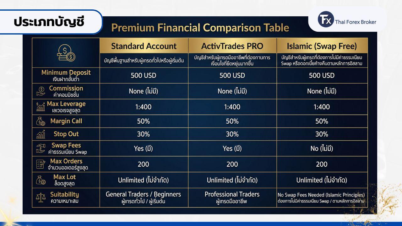 ประเภทบัญชีของ ActivTrades