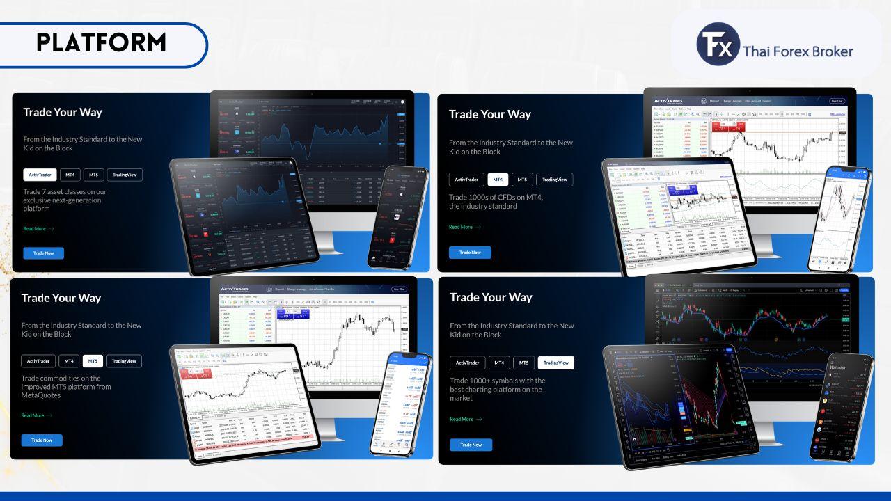 ถ้าพูดถึงแพลตฟอร์มการเทรดของ ActivTrades ต้องบอกเลยว่าค่อนข้างให้ตัวเลือกมาหลายแบบครับ ทั้งแพลตฟอร์มยอดนิยมระดับโลก และแพลตฟอร์มที่บริษัทพัฒนาเอง ทำให้เทรดเดอร์สามารถเลือกใช้งานตามสไตล์การเทรดของตัวเองได้เลยครับ