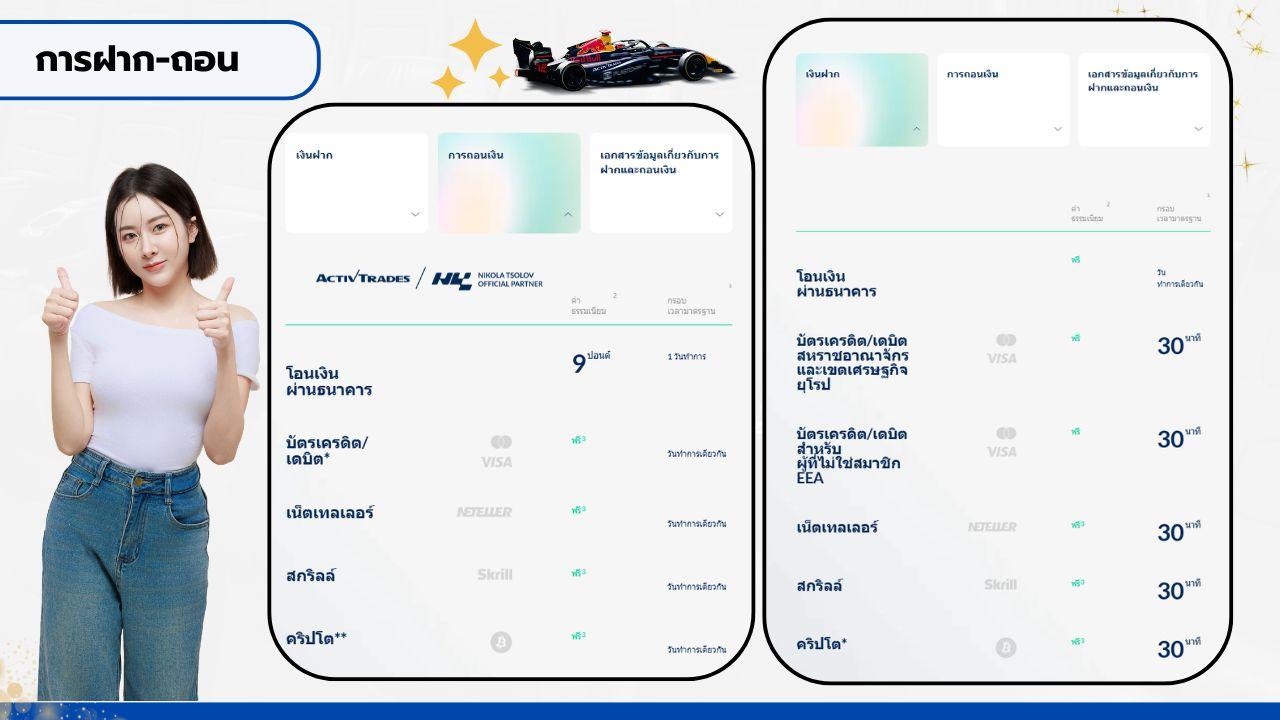 - ในเรื่องค่าธรรมเนียม ต้องบอกว่า ActivTrades ไม่คิดค่าธรรมเนียมในการฝากเงินครับ แต่บางกรณีธนาคารหรือผู้ให้บริการชำระเงินอาจมีค่าธรรมเนียมของตัวเองได้เหมือนกัน