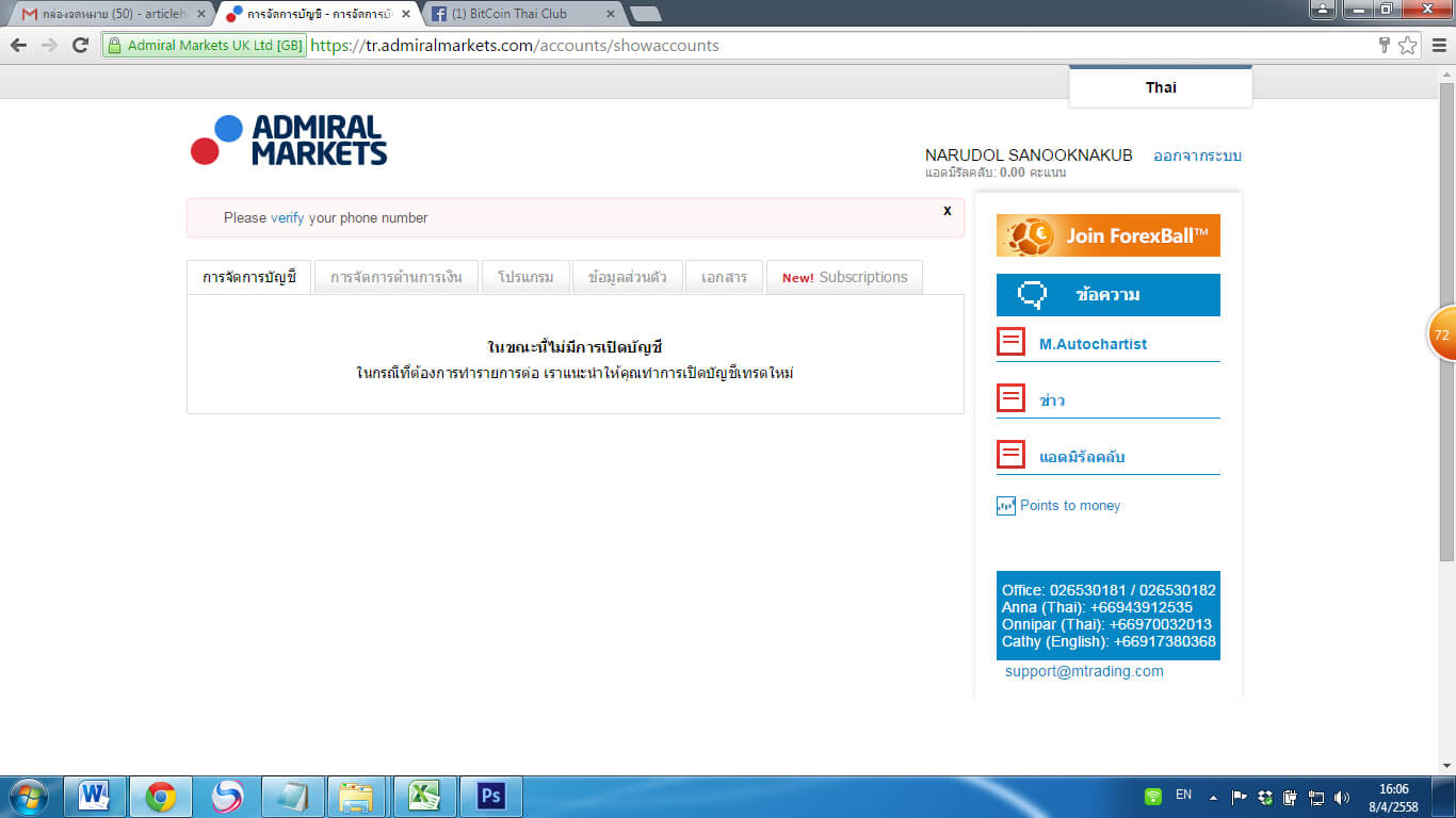 • หน้าเว็บไซต์ ภาษาไทย ซับพอร์ต Live Chat ภาษาไทย email  th@admiralmarkets.com