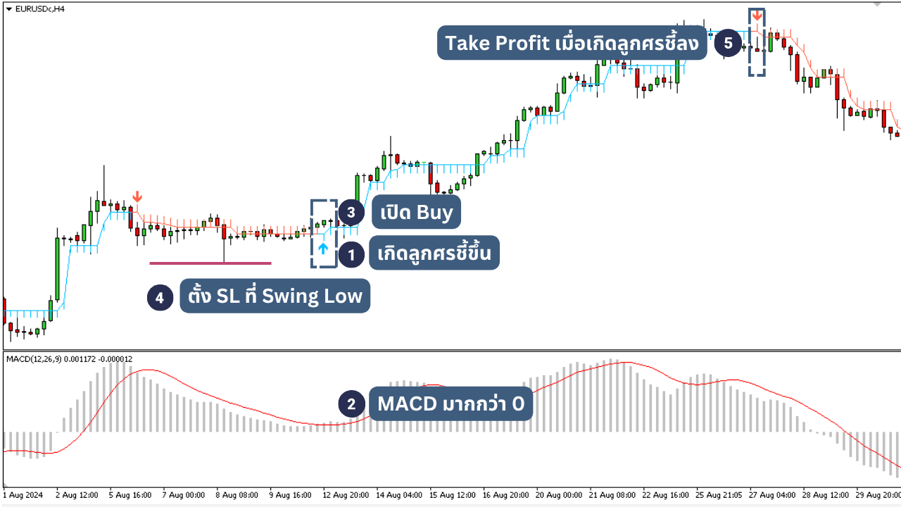 ตัวอย่างการเทรดด้วย The Jesing Magic BuySell Arrow