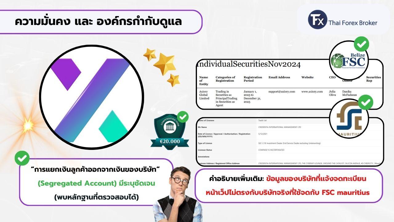 รูปภาพความมั่นคง และ ความน่าเชื่อถือของของโบรกเกอร์ Axiory