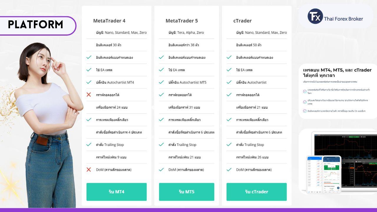• MetaTrader 5 (MT5) ถ้าใครต้องการแพลตฟอร์มที่ทันสมัยขึ้น MT5 ก็เป็นตัวเลือกที่น่าสนใจครับ เพราะถูกออกแบบมาให้รองรับสินทรัพย์หลายประเภทมากขึ้น เช่น CFD หุ้น ดัชนี และเครื่องมือการวิเคราะห์ที่ละเอียดกว่า MT4 ครับ