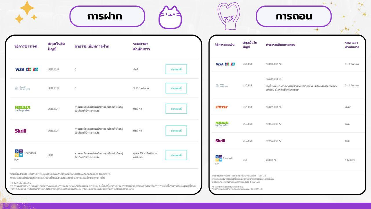 • ในเรื่องค่าธรรมเนียม โดยปกติการถอนเงิน ไม่มีค่าธรรมเนียมจากฝั่งโบรกเกอร์ แต่ถ้าถอนเงินจำนวนต่ำกว่า 200 USD อาจมีค่าธรรมเนียมประมาณ 10 USD ตามเงื่อนไขของระบบครับ