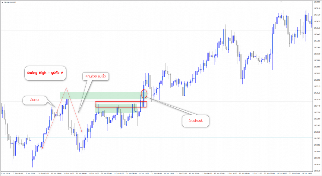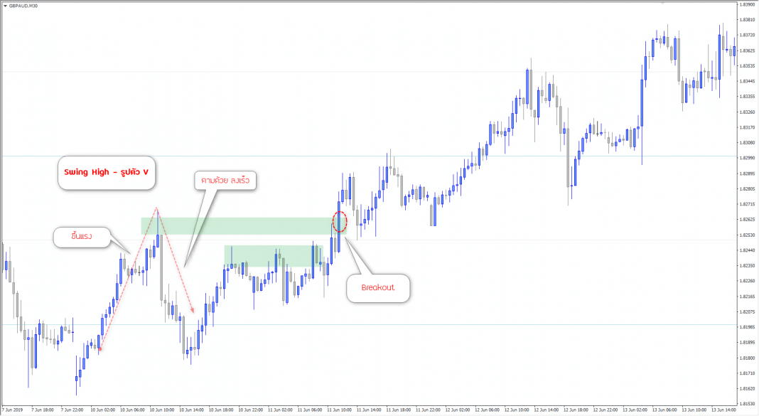 วิธีการเทรด breakout ที่ swing high และ swing low