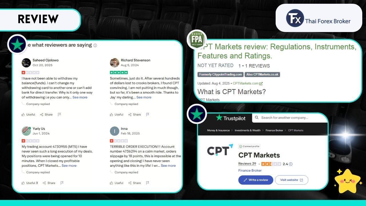 • CPT Markets ไม่มีคะแนนรีวิวเลย มีเพียง 1 รีวิวเท่านั้น