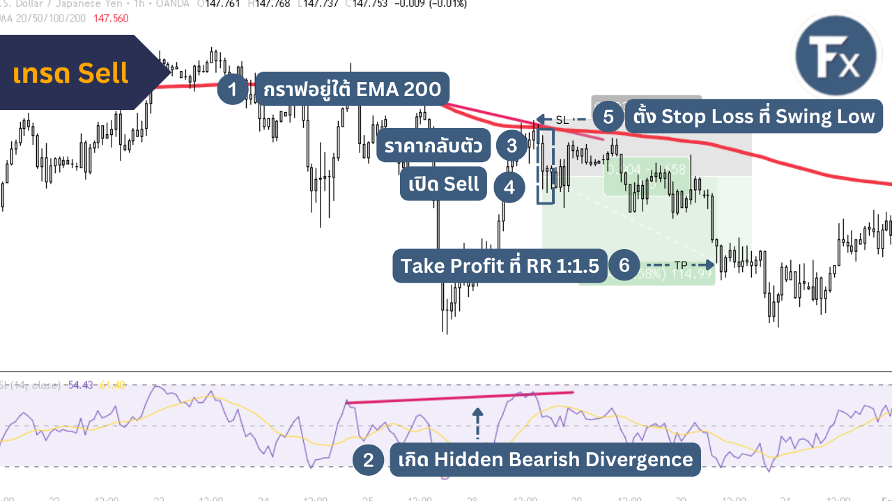 - RSI เกิด Hidden Bearlish Divergence