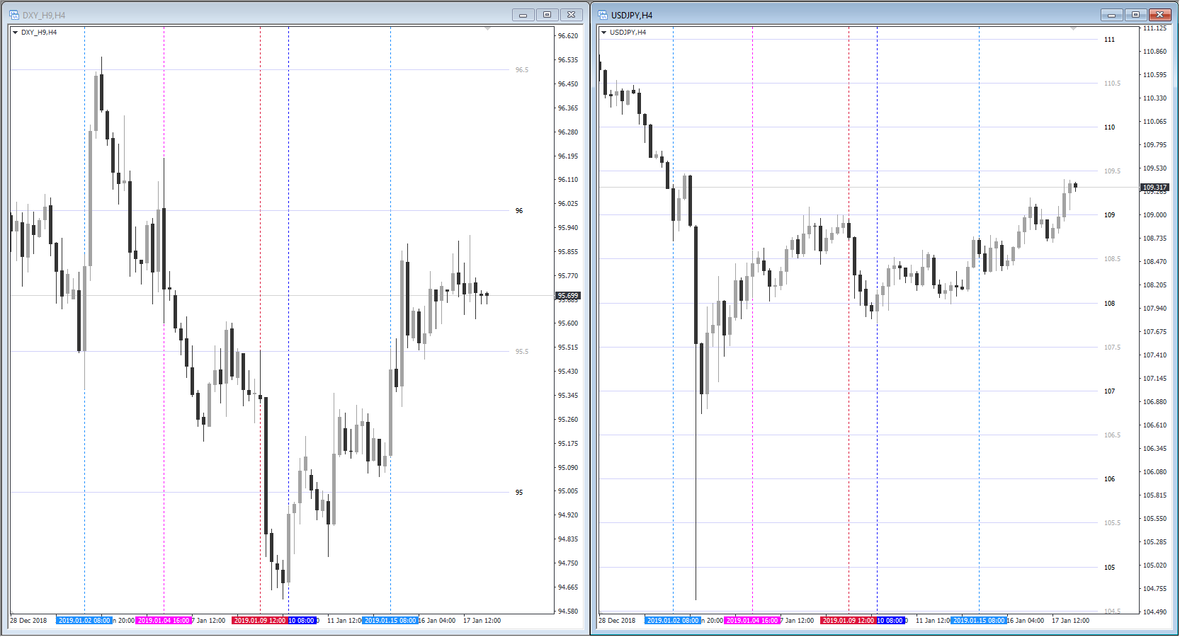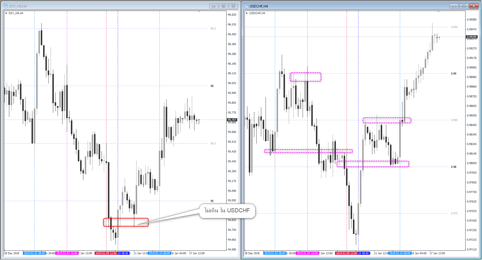 แต่ที่จะนำเสนอในที่นี้คือการใช้ Dollar index เพื่อ correlate กับ demand/supply level, support/resistance หรือ key levels เพื่อเป็นการยืนยันว่าค่าเงินดอลลาร์มีการเทรดตรงนั้นจริงๆ ด้วย เราก็จะได้ข้อมูลที่สามารถยืนยันได้ว่ามีการเข้าตลาดด้วย placing trades จริงๆ  จากการวิเคราะห์ 2 คู่เงิน เพื่อเพิ่มความเป็นไปได้ให้มากขึ้นอีกระดับหนึ่ง และเดี๋ยวนี้หลายๆ โบรกมี dollar Index  เพิ่มเข้ามาให้ด้วย อย่างในโบรก ICMarkets มีอยู่ในกลุ่ม Future CDFS ชื่อ DXY_H9 (US Dollar Index – Mart 19 CFD) จะมีตัวท้ายที่เปลี่ยนไปบ้าง หรือถ้าโบรกที่ท่านเทรดไม่มีท่านก็สามารถดูได้จาก investing.com – US Dollar Index Futures