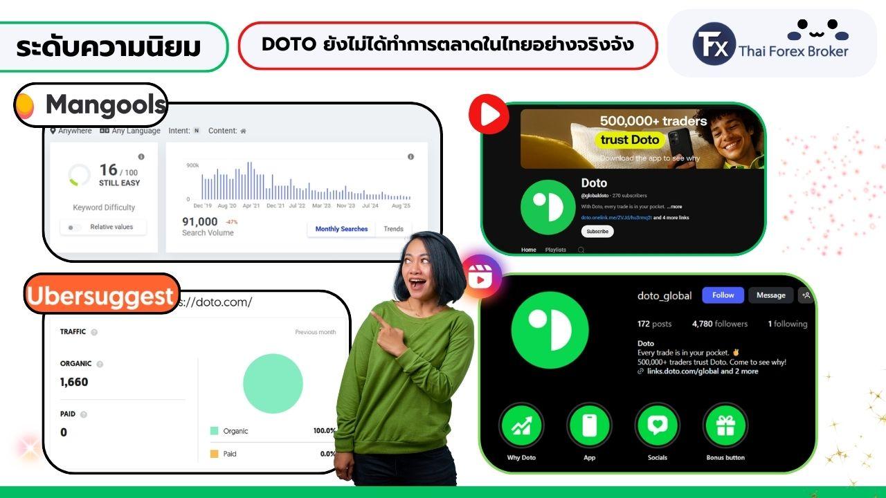ถ้าพูดแบบความรู้สึกตรง ๆ เลยนะครับ Doto ในไทยตอนนี้ยังอยู่ในช่วง “คนรู้จักน้อย แต่กำลังเริ่มต้น” ครับ ใครที่เล่นสายโบรกใหม่ ๆ อาจจะเคยเห็นผ่าน ๆ แต่ยังไม่ใช่ชื่อที่คุ้นหูสำหรับคนส่วนใหญ่ครับ