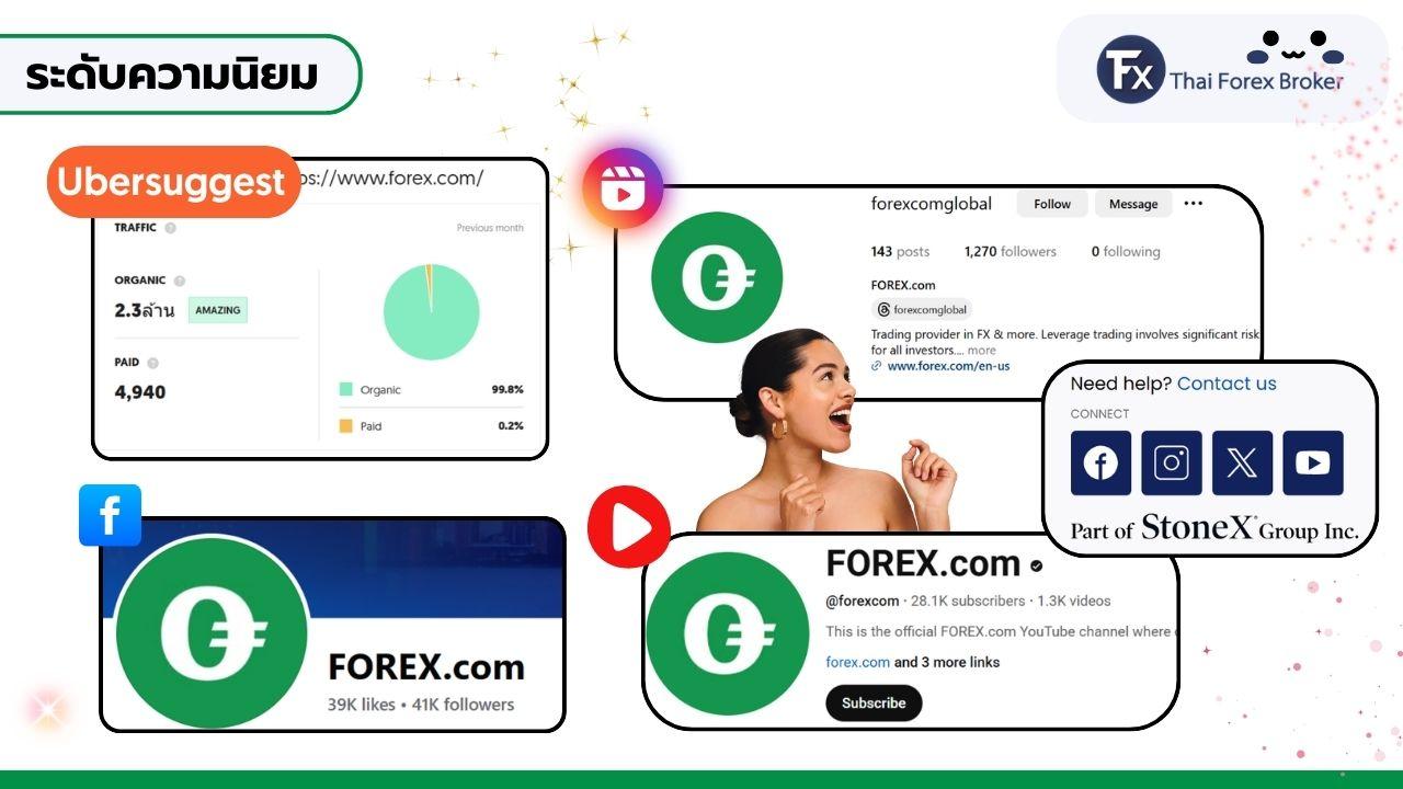 - จำนวนผู้ติดตาม Facebook เพจ global ประมาณ 41,000 คน ภายใต้ชื่อ FOREX.com แม้จะไม่ได้สูงมากเมื่อเทียบกับโบรกสายโปรโมชันหนัก ๆ แต่ผมมองว่าเป็นฐานผู้ติดตามที่เน้นคุณภาพมากกว่าปริมาณครับ