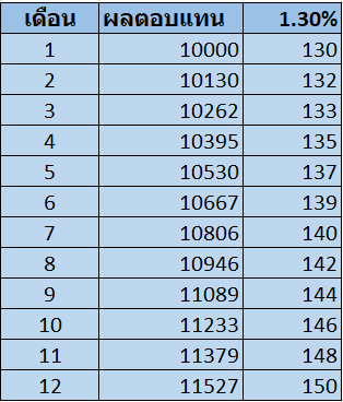 ภาพที่ 3 แสดงผลตอบแทนต่อเดือนที่ทำให้ผลตอบแทนต่อปีเท่ากับ 15 %