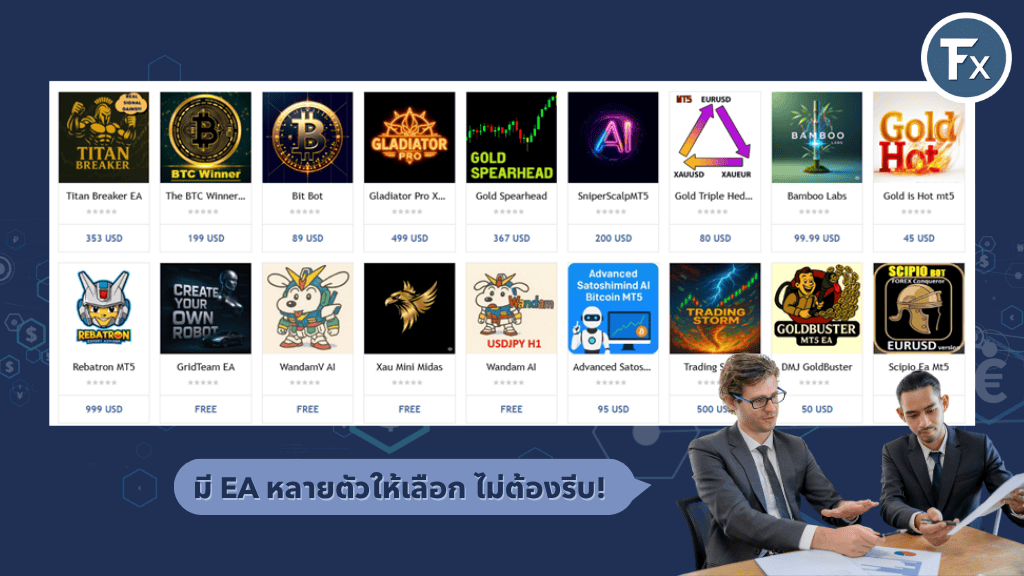 - MQL5 Marketplace: ตลาดใหญ่สำหรับเทรดด้วย MT4/MT5 มี EA ให้เลือกทั้งฟรีและเสียเงิน