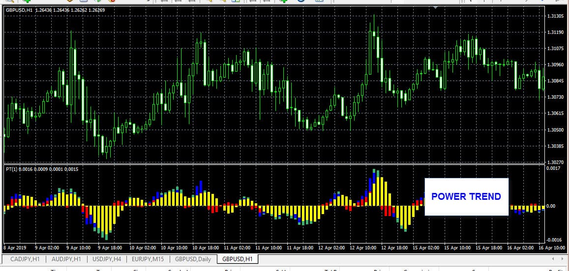 Power Trend => อินดี้ตัวนี้แม้ว่าจะใช้ชื่อออกแนวเทรน แต่กลับใช้  MACD  ทำงานและบอกสัญญาณ เหมือนเอามา Modify  เป็น Color MACD  กลาย ๆ การตั้งค่ามีการแก้ไขในส่วนของสีเล็กน้อยครับ เปลี่ยนสีเหลืองเพื่อให้ดูสบายตา สดใส ..