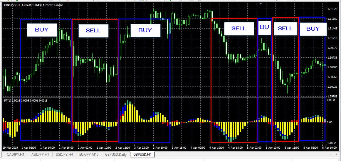 ประมาณว่า สีน้ำเงิน ขาขึ้น สีแดง ขาลง สีเหลืองน่าจะ เป็นจังหวะลังเล .. ข้อเสียของ เว็บนี้คือ ไม่มีการแนะนำ รีวิว การทำงานของอินดี้ครบ มีบ้างเป็นบางตัว  ต้องมาคาดการณ์ ประมาณเองว่า สัญญาณแบบไหน  Buy  สัญญาณไหน  Sell  สรุป เลย ว่า ถ้าเส้น TFD เป็น สีน้ำเงิน ให้เปิด  Buy  , เส้น TFD  เป็นสีแดง ก็ให้เปิด  Sell  ถ้าเป็นสีเหลือง ให้ รอก่อน ยังไม่ชัดเจน  ตอนนี้เราข้ามเรื่อง  Repaint  ไปก่อน ขอพาท่านมาดูหน้าจอสุดท้ายของกราฟ  GBP/USD กันว่ามีจังหวะเปิด ออร์เดอร์กี่ครั้ง