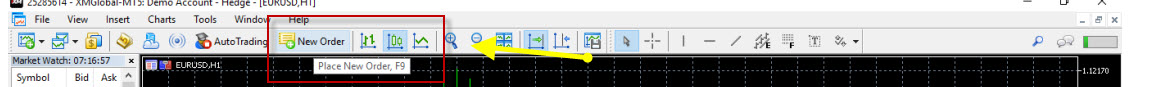ในตอนนี้ขอนำเสนอ ส่วนเมนู tools bar ก่อน นะครับ ก่อนที่จะเริ่ม ขอให้ดูตรง สี่เหลี่ยมสีแดง ที่ มีคำว่า Hedge ก่อนครับ ซึ่งใน MT4 จะไม่มีคำนี้ต่อท้าย ใน MT5 นั้นหมายความว่า พอร์ตนี้สามารถเปิด ออร์เดอร์ ถ่วง หรือคาน กันได้ ซึ่งใน เวอร์ชั้น แรก ๆ ของ MT5 นั้นยังไม่มี คนถึงไม่นิยมเทรดกัน เอาละมาเริ่มกันที่ เมนู => Create new chart