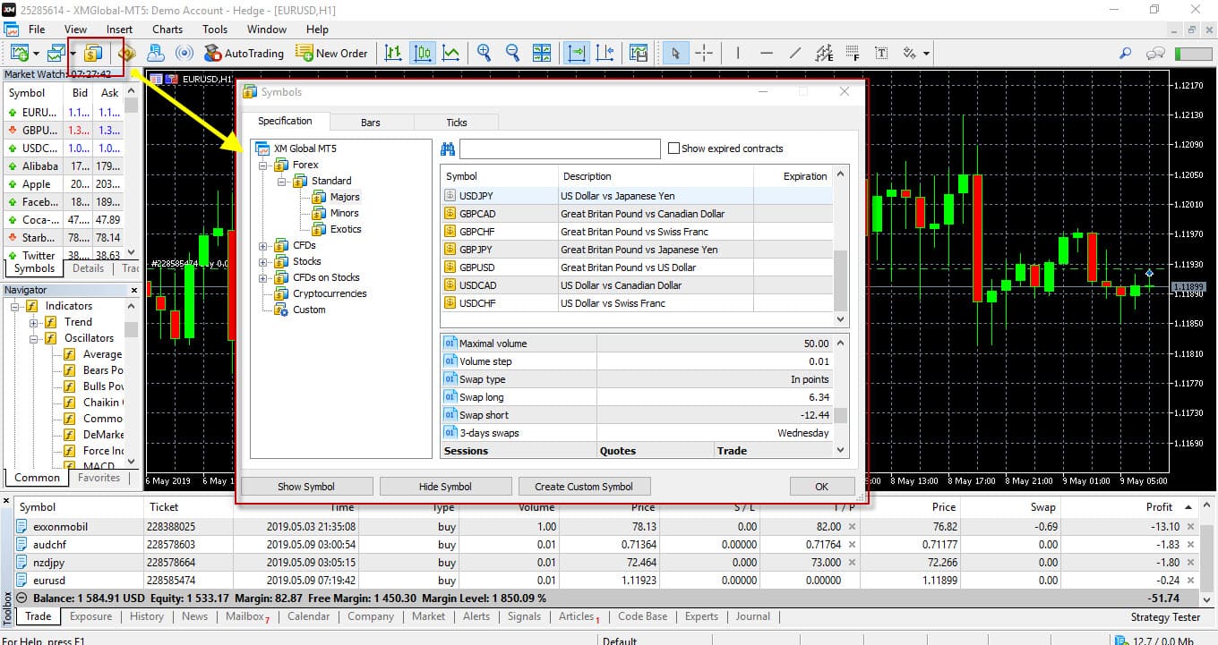มาดู เมนู ต่อไป กันเลย Show Symbols List ซึ่งใช้ดูข้อมูล รายละเอียดต่าง ๆ ของคู่เงิน ซึ่งใน MT5 นั้น เมนูนี้จะเพิ่มการแบ่งหมวดหมู่ของคู่เงิน