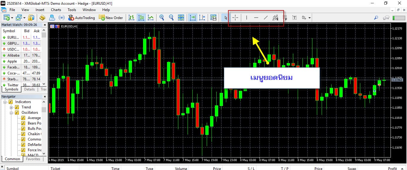 การใช้ Cross Shair ลากเพื่อ ดูระยะ ทางของแท่งเทียน เมนูที่เหลือ ก็จะเป็น การตีเส้น การตี