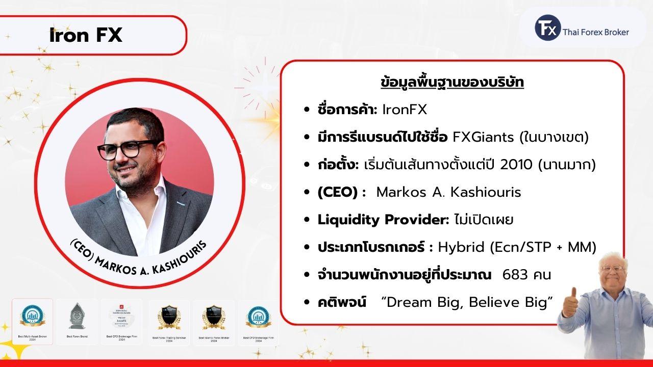 - บริษัทใช้ชื่อการค้า IronFX และวางตัวเป็นโบรกเกอร์ออนไลน์ระดับโลก โดยมีสินทรัพย์ให้เทรดมากกว่า 500 รายการ บนหลายแพลตฟอร์ม และให้บริการลูกค้าในกว่า 190 ประเทศ
