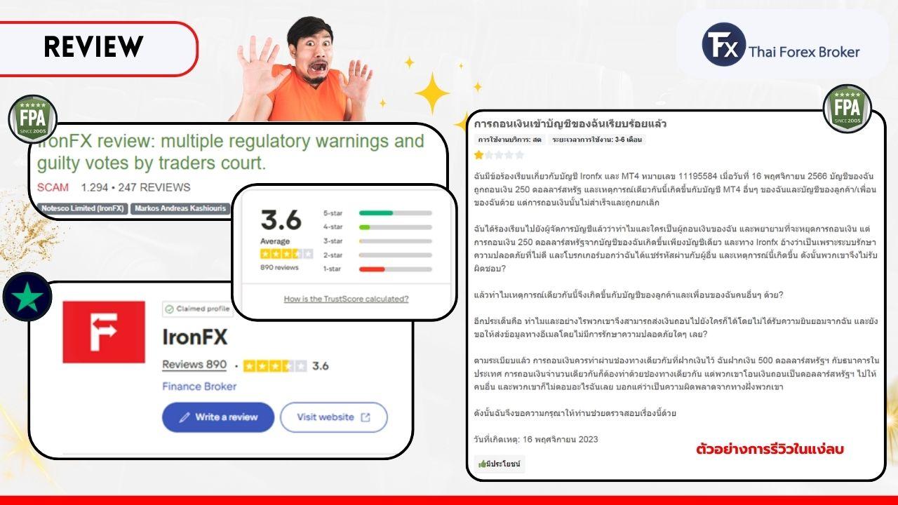 - จากที่ผมเข้าไปดูคะแนนบน Trustpilot พบว่า IronFX ได้คะแนนเฉลี่ยประมาณ 6 จากผู้รีวิวราว 890 คน ซึ่งในความรู้สึกของผมถือว่าอยู่ในระดับกลาง ๆ ไม่ได้ดีมากแต่ก็ไม่ได้แย่จนเกินไปครับ