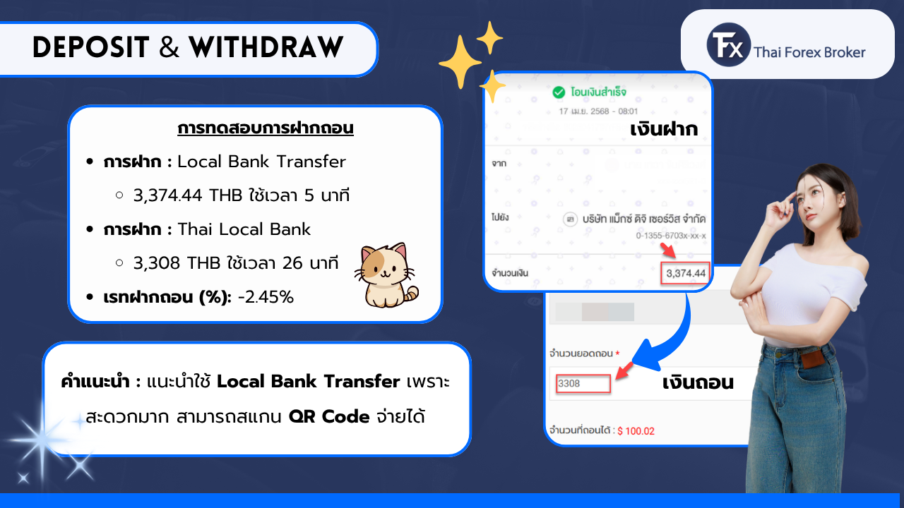 - รองรับการฝากถอนผ่านธนาคารไทย ทำให้ใช้งานง่ายสำหรับเทรดเดอร์ในไทย
