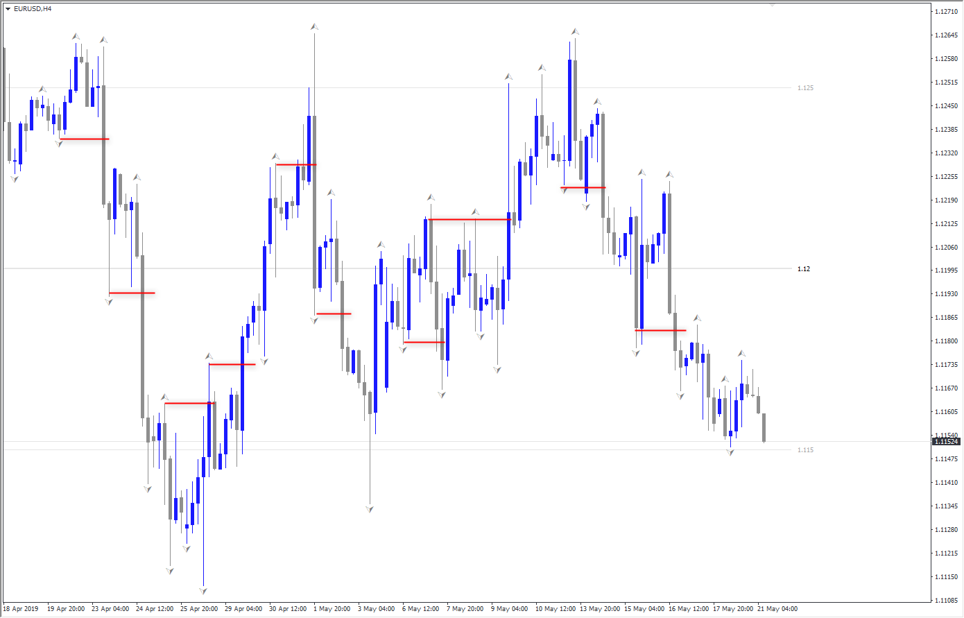 อย่างภาพด้านบนเป็นเรื่องราคา breakout แล้วใช้เทรดเดอร์ที่ถือ Positions อยู่ในตลาดแต่ผิดทางหรือ trapped traders ที่ต้อง Liquidate ที่เปิดอยู่เพื่อออกจากตลาด จะเห็นว่าหลักการเดียวกันหมด และราคาทำงานดีด้วย หรือเมื่อท่านใช้ indicator ตัว Fractals ท่านจะเห็นการทำงานแบบนี้ชัด