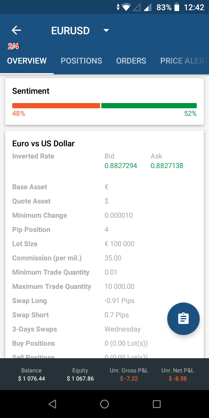 เมื่อท่าน tap ที่พื้นที่ ส่วนค่าเงินนั้นๆ ที่ไม่ใช่ส่วน SELL หรือ BUY ก็จะเปลี่ยนเป็นส่วน Overview สังเกตดูตรงส่วนที่เป็น WATCHLIST tab ด้านบนจะเปลี่ยนเป็น Overview จะประกอบด้วยส่วนต่างๆ ดังนี้