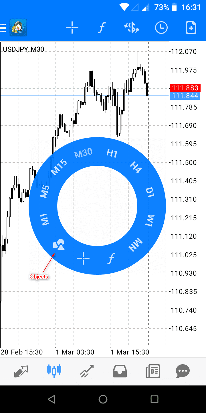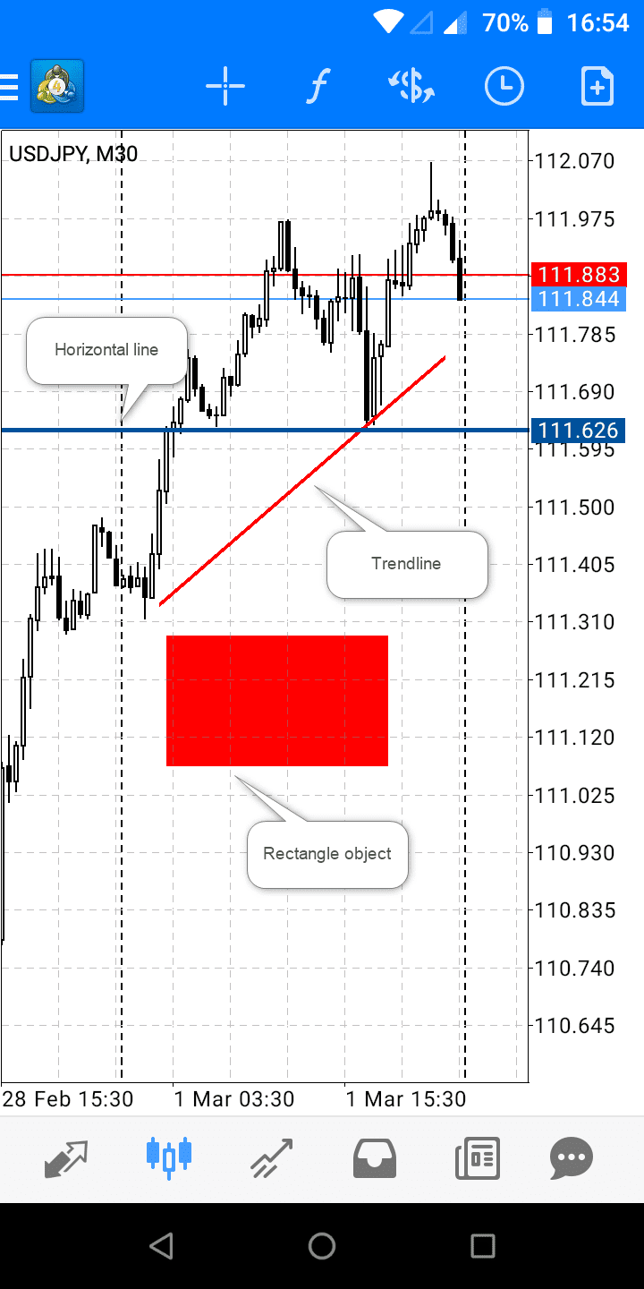 เรื่อง objects ช่วยในการวิเคราะห์ Metatrader 4 mobile trading มีให้ท่านถึง 24 objects สามารถเลือกใช้ได้ประกอบกับชาร์ต 3 การเรียกใช้ objects สำหรับ Metatrader 4 การ tap พื้นที่ชาร์ตปล่า ดังนั้นท่านต้อง tap ด้านล่าง ตรงไอคอนชาร์ตเพื่อเข้าชาร์ตโหมดก่อน
