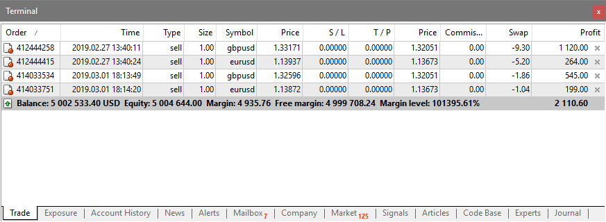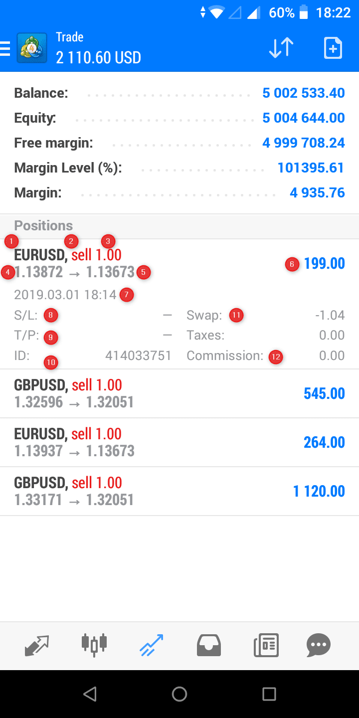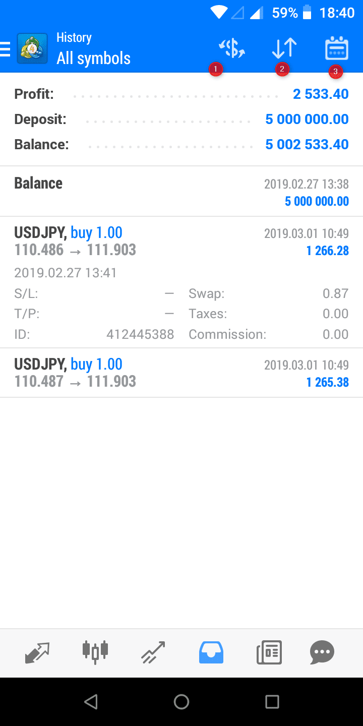 ก็จะมีเพิ่มที่เลข 1 สำหรับ tap เพื่อจัดเรียงการแสดงผล ก็จะมีเรียงอันดับตาม Order, Time, Symbol และ Profit