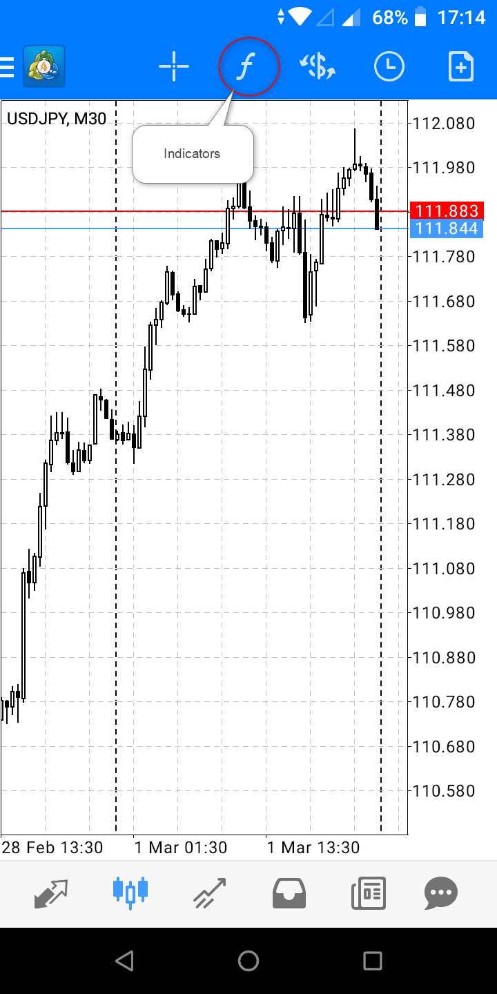 การเพิ่มอินเคเตอร์ที่มาพร้อมกับ Mobile editon ของ Metatrader 4 มีทั้งหมด 30 การใช้งานก็ไม่ต่างจากเวอรชั่น Desktop