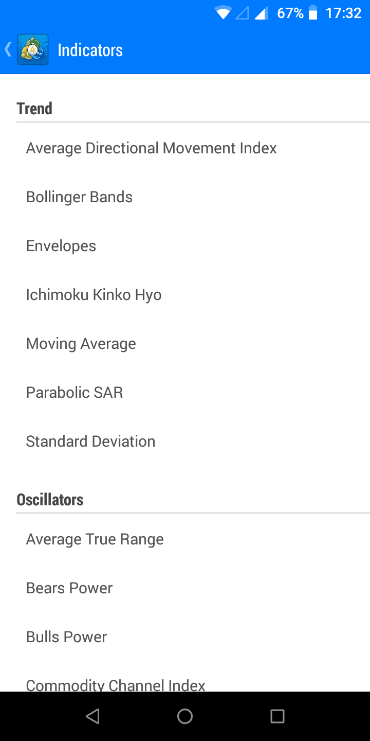 เมื่อท่าน tap ครั้งแรกโปรแกรมจะโชว์รายการอินดิเคเตอร์ที่โปรแกรมให้มา จัดเป็นหมวดหมู่มี Trend, Oscillators, Volumes และ Bill Williams พอท่าน tap อินเดิเคเตอร์ที่ท่านต้องการใช้โปรแกรมก็จะโชว์ค่า default ให้ท่านปรับแต่งและจากนั้นท่านก็ tap คำว่า DONE ด้านบนขวา ก็เป็นการเพิ่มอินดิเคเตอร์เช้าชาร์ตเรียบร้อย