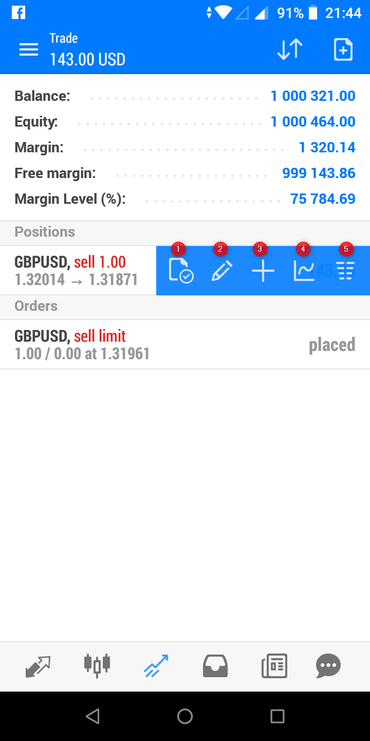 Mobile tradin Metatrader 5