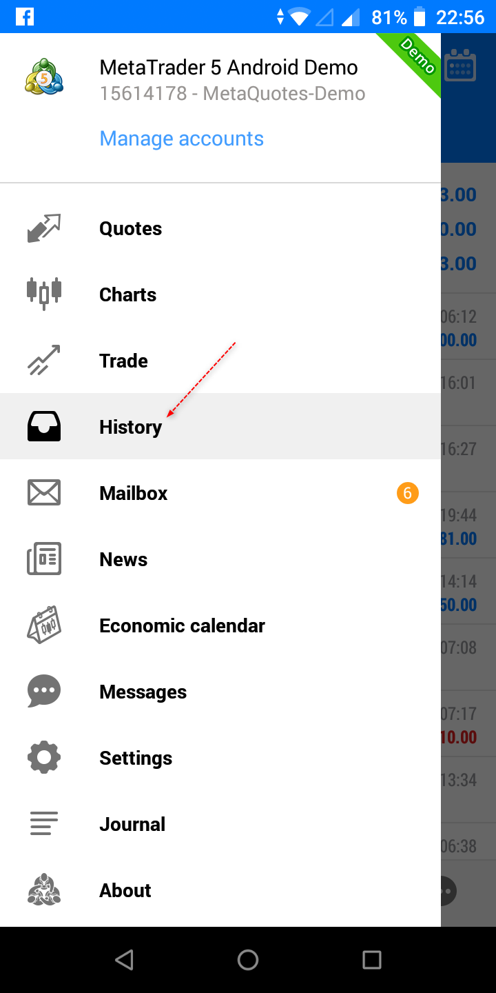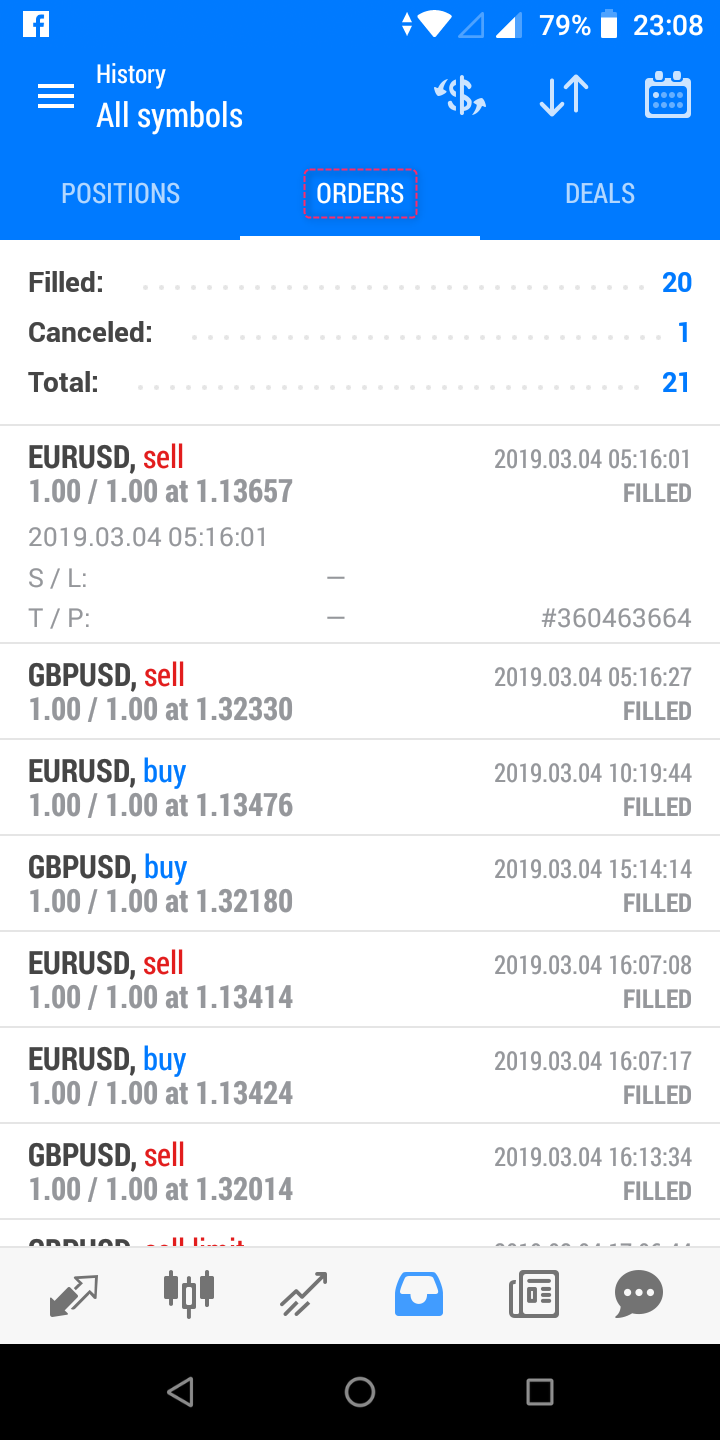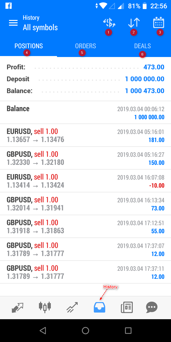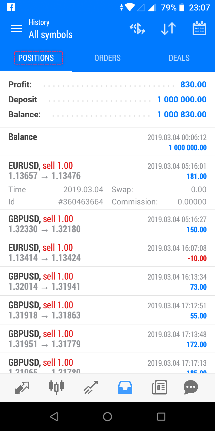 โดยการแสดงผล จะแบ่งเป็น Posititons, Orders หรือ Deals และเมื่อ tap แต่ละรายการจะมีรายละเอียดขึ้นมา
