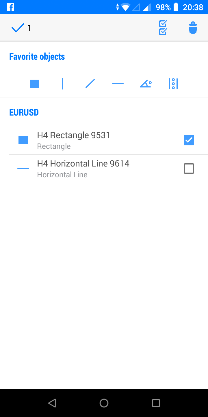 โดยการ tap ที่ไอคอน + ก็จะมีรายการตามประเภทมาให้ มี LINES, CHANNELS, GANN, FIBONACCI, ELLIOTT และ SHAPES