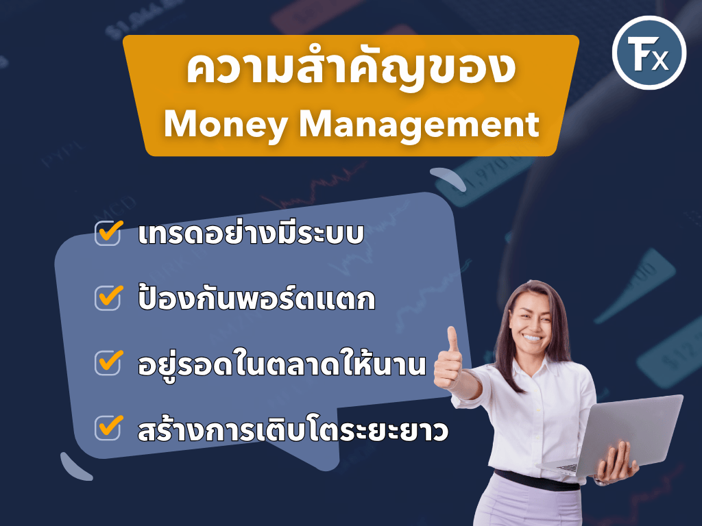 - Money Management (MM) คือการวางแผนบริหารเงินทุน เพื่อสร้างสมดุลระหว่างผลตอบแทนและความเสี่ยง เป้าหมายคือการอยู่รอดในตลาดระยะยาว
