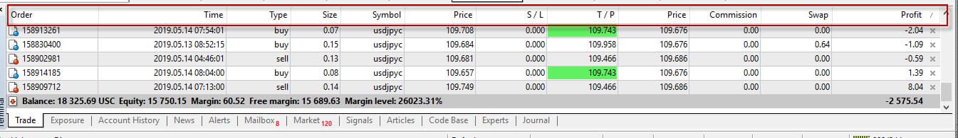 – Margin Level-มีค่าเท่ากับ (Volume*intial_margin/100) ถ้าลดเหลือน้อยต่ากว่าค่า Margin level ตรงOrder จะเป็นสีแดงๆเตือนขึ้นมา ถ้าต่ากว่า Stop level Order ก็จะถูกปิดให้โดยอัตโนมัติ ซึ่งแต่ละบัญชี ก็จะมีระดับ Margin level และ Stop Level ที่แตกต่างกัน (บังคับปิด Orderโดยอัตโนมัติ)
