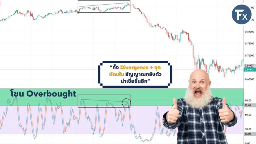 - Stochastic > 80 = อยู่ในโซน Overbought