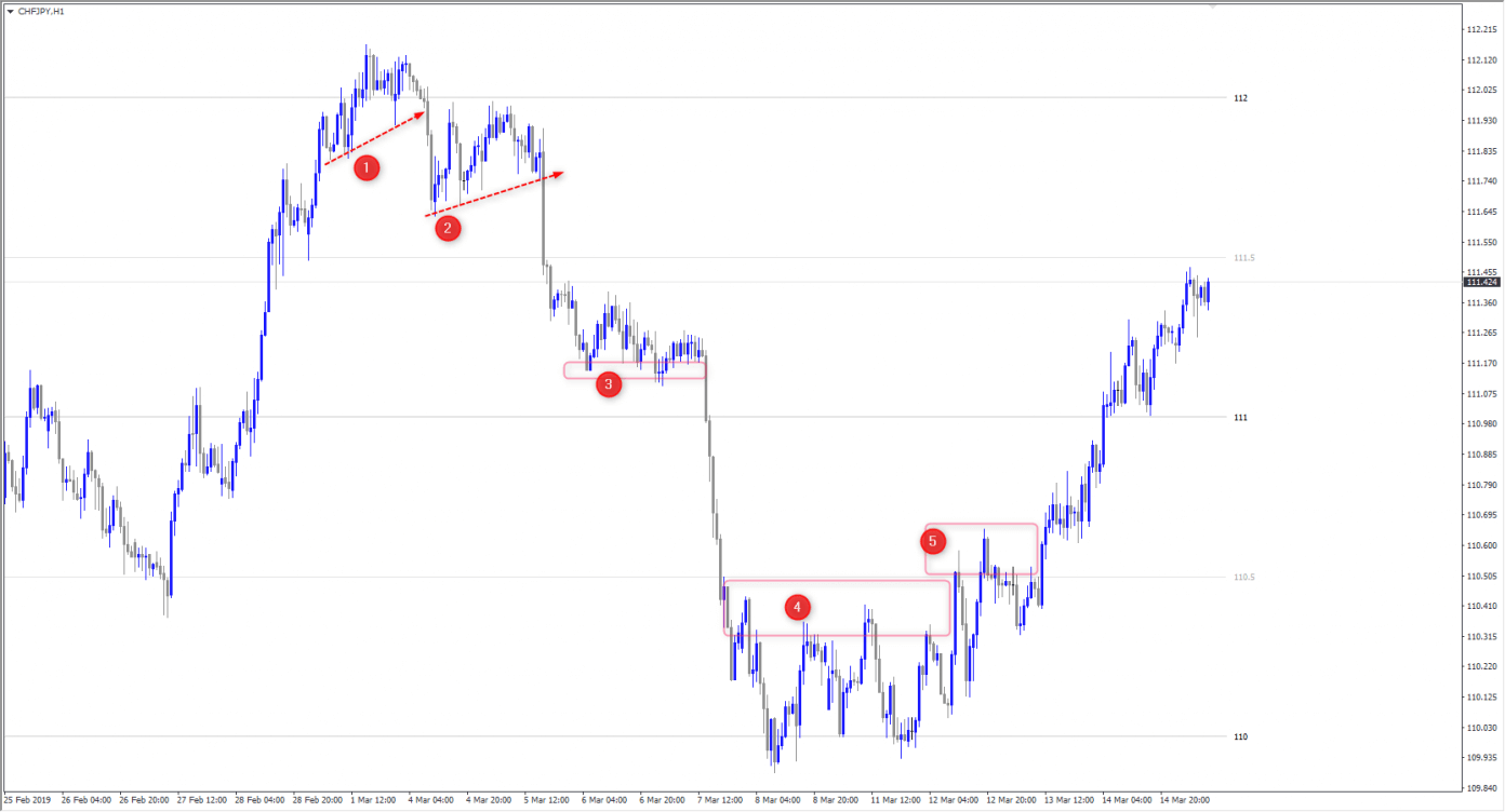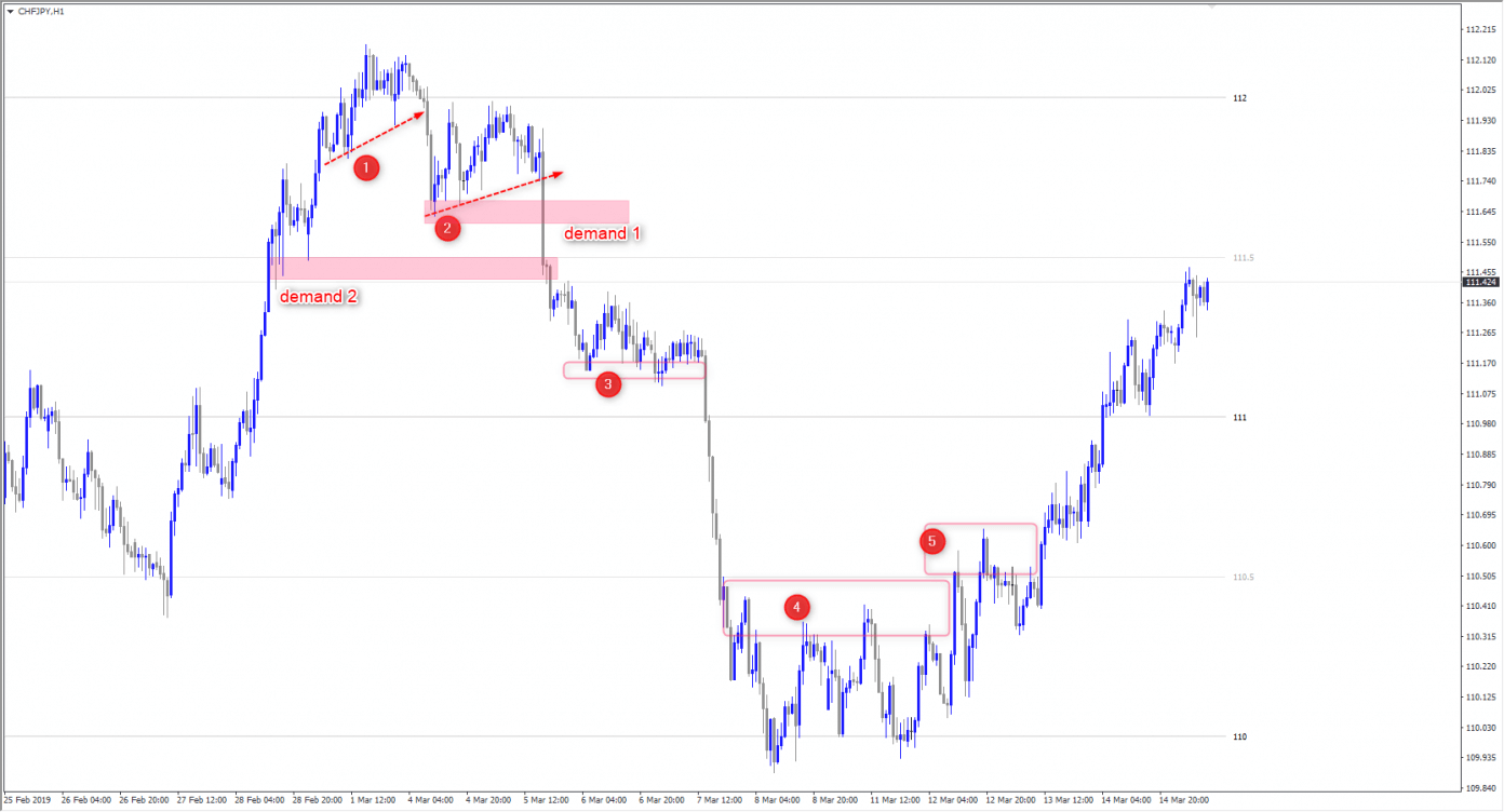 สิ่งหนึ่งที่ได้อธิบายเรื่องอ่าน price charts คือเป็นผลของ trading transactions ที่เกิดขึ้นหรือ fill orders คือบอกถึงที่ๆ limit orders และ market orders ได้ match-and-fill กันไปที่ราคานั้นๆ ตรงพื้นที่นั้นๆ ดังนั้นถ้าพื้นที่นั้นๆ เกิดแบบนี้เยอะ เช่น consolidaton หรือช่วงเป็น base ตอนจะเกิด demand/supply เมื่อเข้าใจหลักการนี้และหลักการทำงานออเดอร์จะเห็นว่ามี open positons ที่เปิดตรงนั้นๆ อยู่ เช่นอย่างพื้นที่เลข 1 2 และ 3 จะเป็นพื้นที่เปิด long posititions อยู่ ขาใหญ่เข้าใจเรื่องออเดอร์ทำงานเป็นอย่างดี และมองออกว่าถ้าทำให้พวกนี้เดือดร้อนจากการเกิดสูญเสียได้เทรดเดอร์ที่เปิด buy อยู่ตอนนี้ก็จะกลายเป็น sellers เมื่อพวกเขารับการสูญเสียไม่ได้ พวกเขาต้องออกจากตลาด ออเดอร์พวกนี้เป็นออเดอร์ที่จำต้องไม่งั้นจะสูญเสียมากกว่านี้