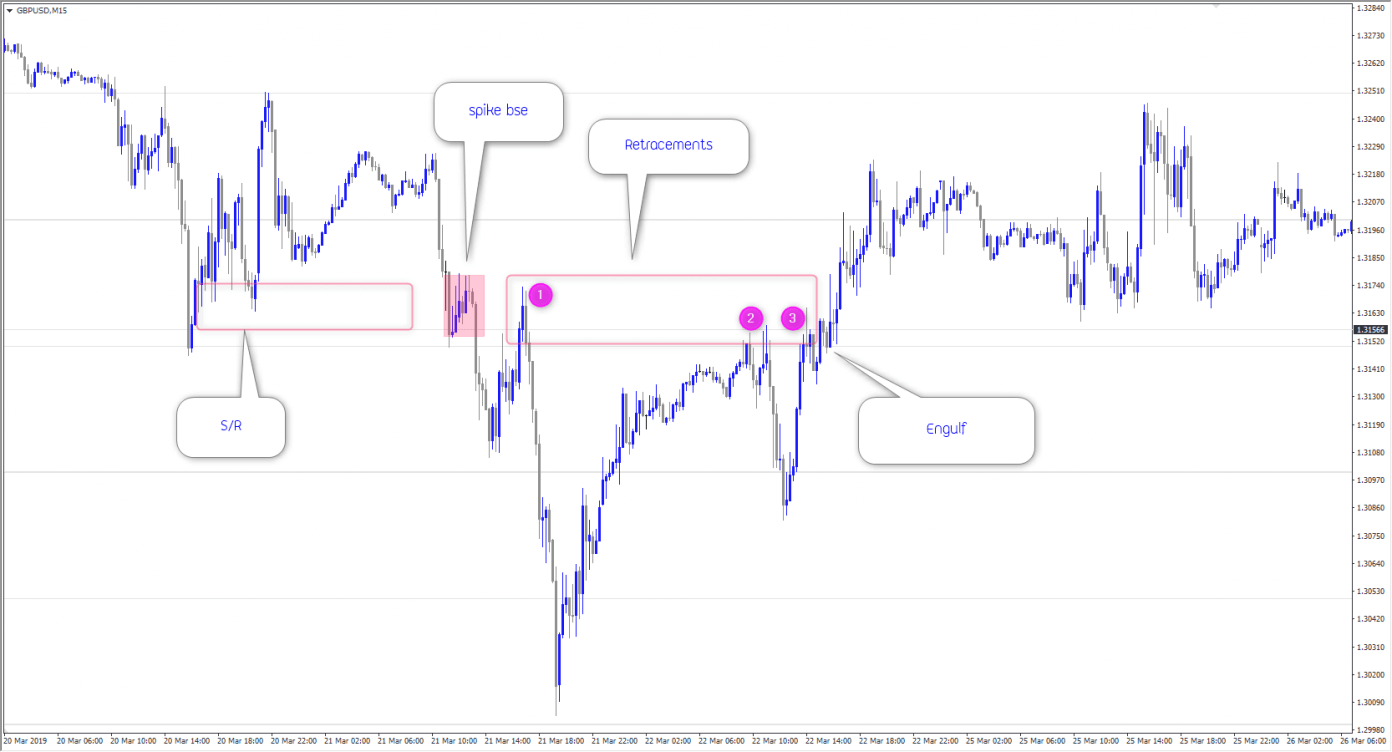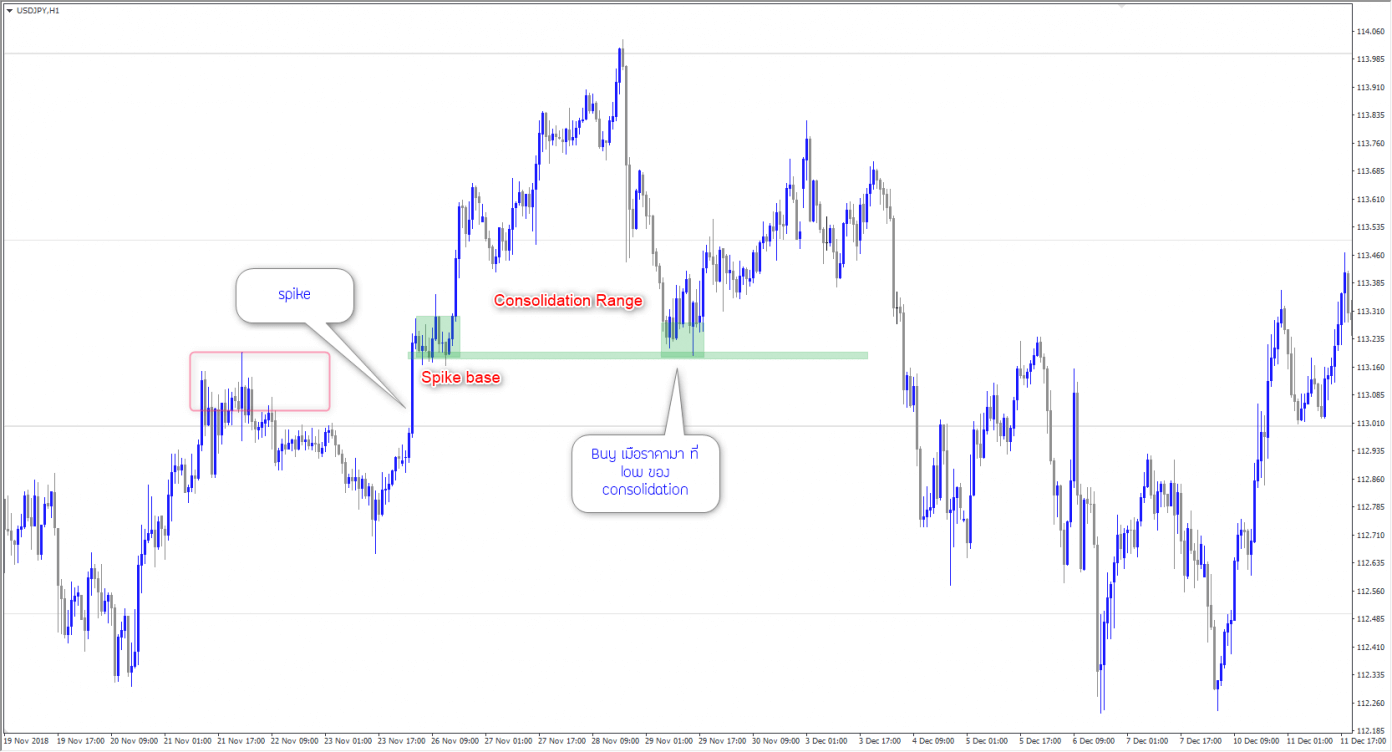 Spike Base เมื่อเกิดขึ้น การเทรดการกลับมาครั้งแรกเลยค่อนข้างจะมีความเป็นไปได้สูงเพราะเงื่อนไขออเดอร์แบบที่อธิบายมาประกอบกัน