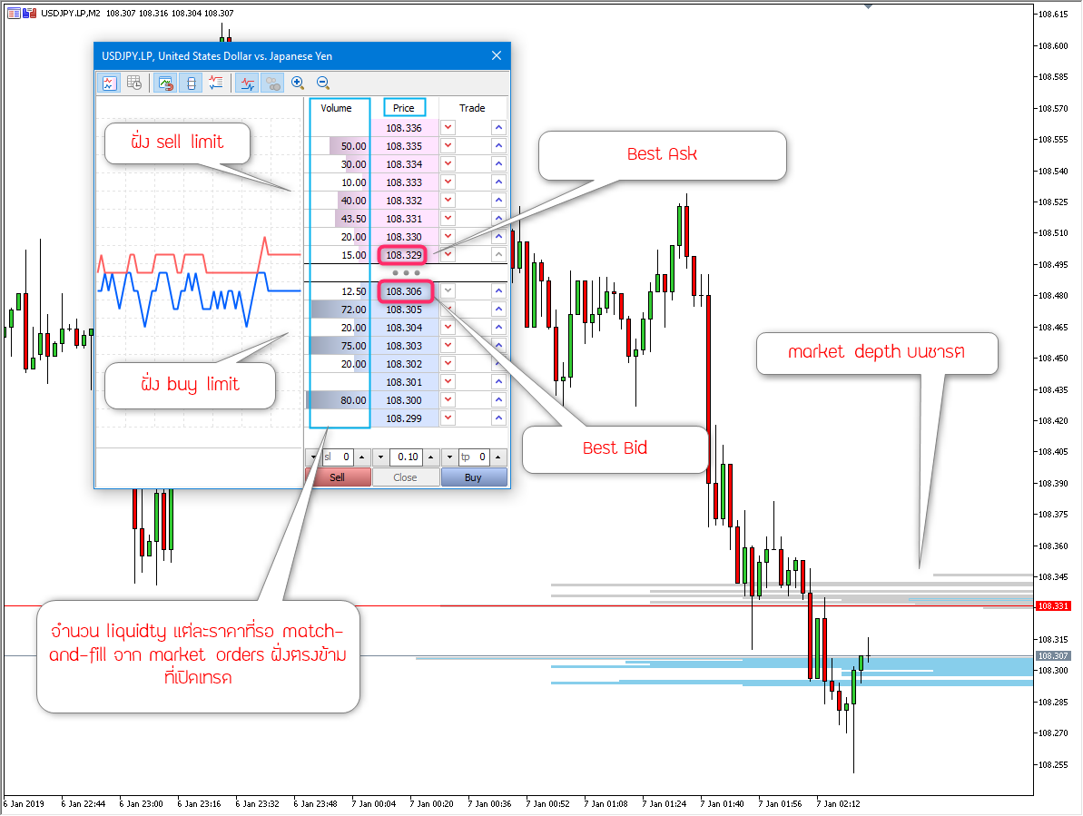 การทำงานนี้ทำให้เรามองเห็นว่าราคาจะไปทางไหนง่ายขึ้นเพราะเรื่องจำนวน liquidity ลดลงไป หรือ unfilled orders/limit orders โดน filled ไปกลายเป็น Positions