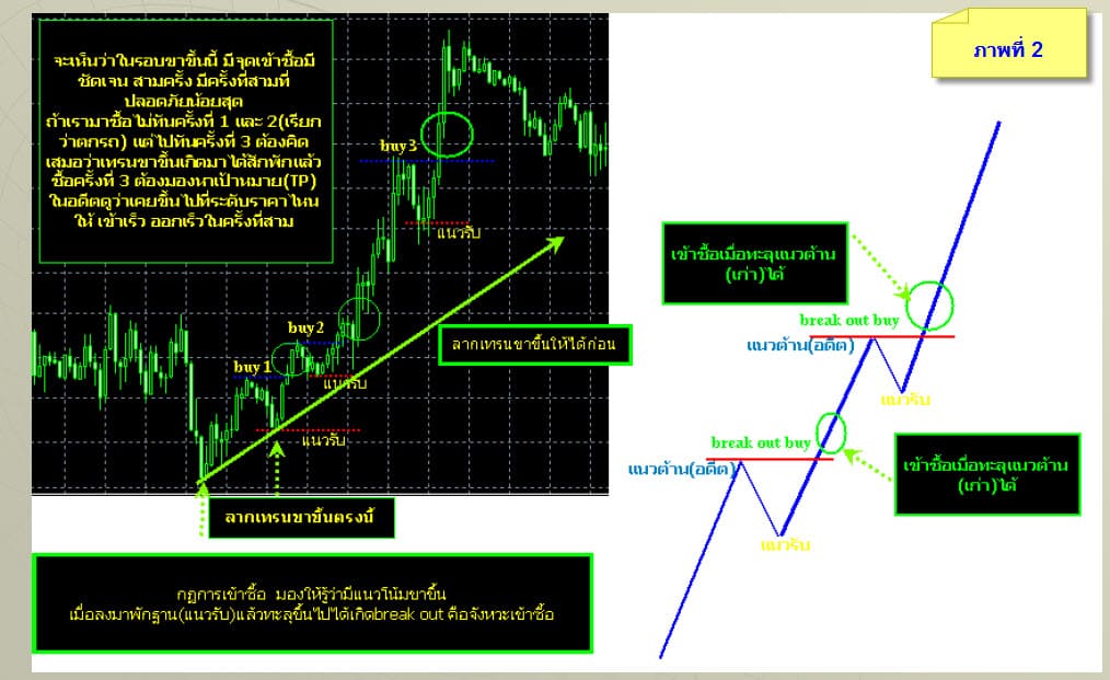 ภาพที่ 2 อธิบายจังหวะการเข้า ออร์เดอร์ ในเทรนขาขึ้น หรือ จังหวะ แนวต้าน