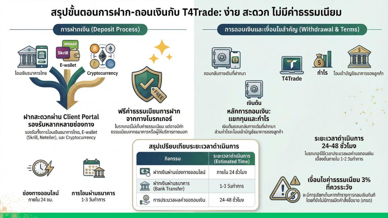 สรุปขั้นตอนการฝากถอนเงิน กับ T4Trade สะดวก ไม่มีค่าธรรมเนียม