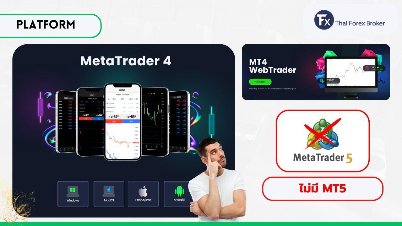 • แพลตฟอร์มการเทรดค่อนข้างจำกัด เพราะปัจจุบัน เน้นใช้งาน MT4 เป็นหลัก และยังไม่มี MT5 หรือแพลตฟอร์มพัฒนาเองของบริษัทครับ