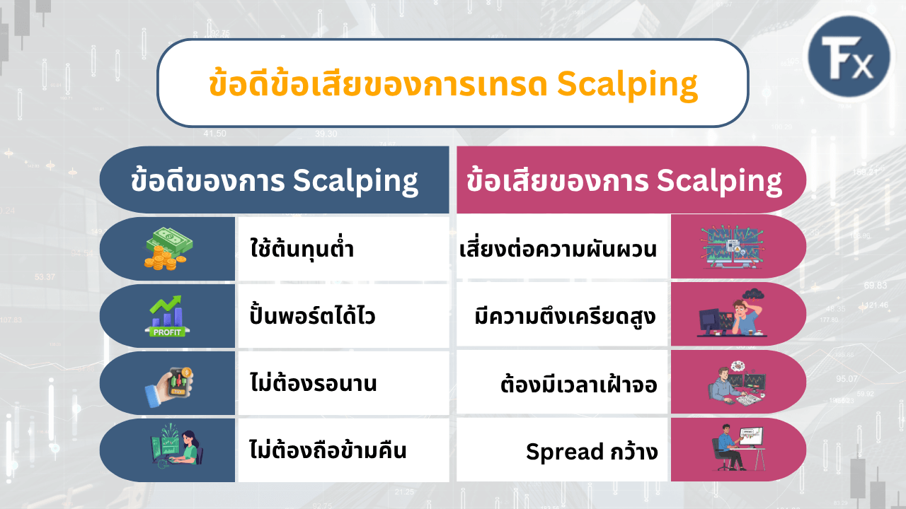 ภาพสรุปข้อดีข้อเสียของการเทรด Scalping