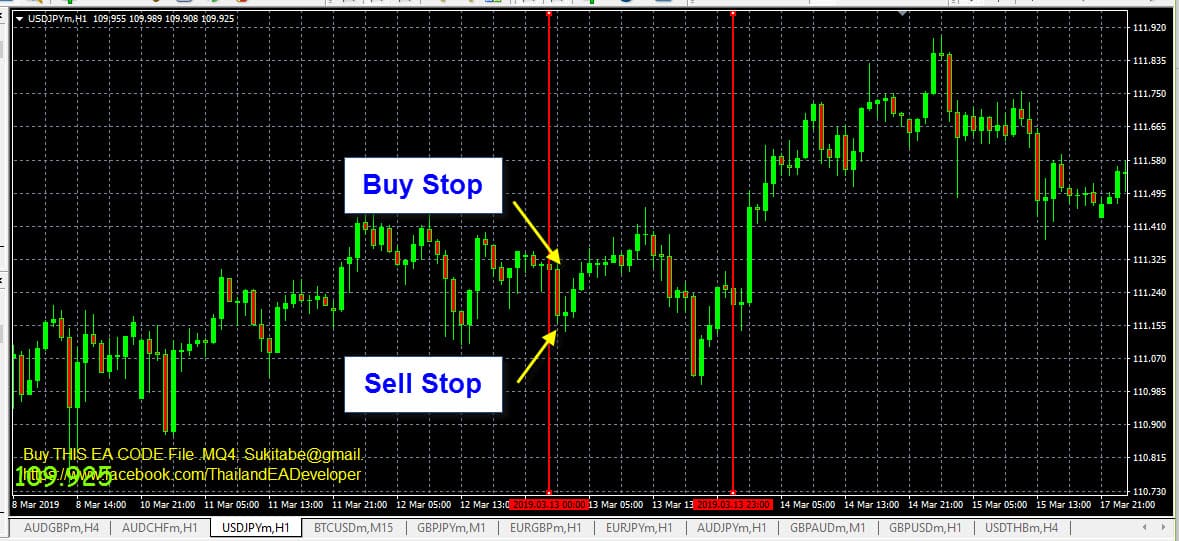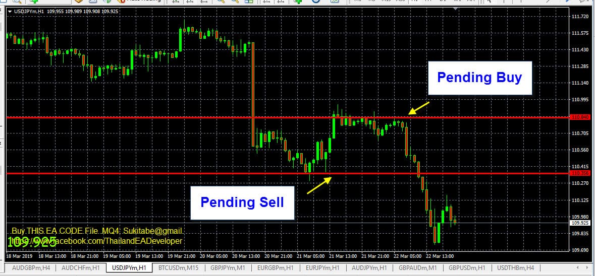 - เมื่อกราฟราคาเริ่มทำงานในแท่ง 1 ชั่วโมงถัดไป และถ้าคำสั่งล่วงหน้าที่ตั้งไว้ ด้านใด ด้านหนึ่งเริ่มทำงาน ให้ลบคำสั่งล่วงหน้าอีกด้านหนึ่งออกทันที