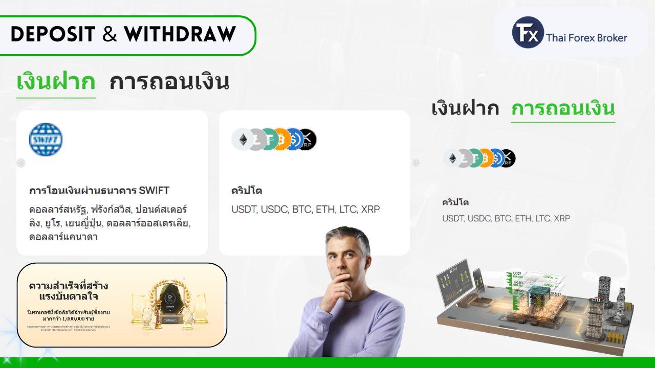 | ถอนเงิน (คริปโต) | BTC, ETH, XRP, LTC | เหรียญหลักที่นิยม |